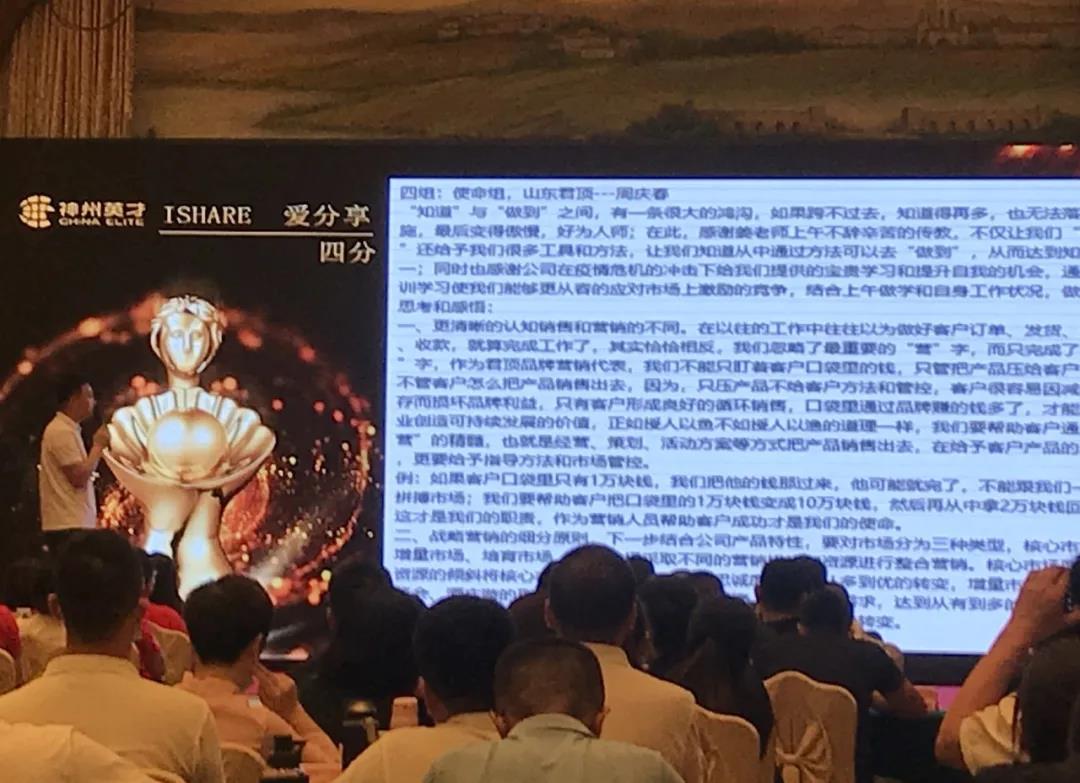 神州英才集團(tuán)總裁姜桐老師,授課過程中講解內(nèi)容詳實(shí)貼近市場(chǎng),案例分享妙趣橫生,現(xiàn)場(chǎng)高潮迭起。姜老師提出,營(yíng)銷應(yīng)該激發(fā)企業(yè)的整體營(yíng)銷活力,充分挖掘企業(yè)現(xiàn)有客戶資源提高利用效率,然后通過賦能批量復(fù)制優(yōu)秀的銷售人才,通過SOP建設(shè)實(shí)現(xiàn)營(yíng)銷系統(tǒng)的標(biāo)準(zhǔn)化、流程化,以此助力企業(yè)實(shí)現(xiàn)持續(xù)倍增業(yè)績(jī)的核心目標(biāo)……課程干貨滿滿,內(nèi)容上既系統(tǒng)有高度又注重落地實(shí)效,現(xiàn)場(chǎng)學(xué)員一致好評(píng)。