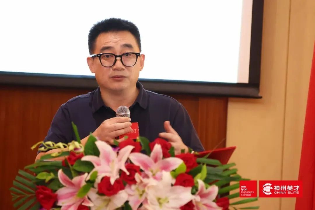 △2021年,在法國里昂商學(xué)院-神州英才全球創(chuàng)新管理EMBA課程研修班開學(xué)典禮上華戍防務(wù)總經(jīng)理許懷陽作為新生代表演講
